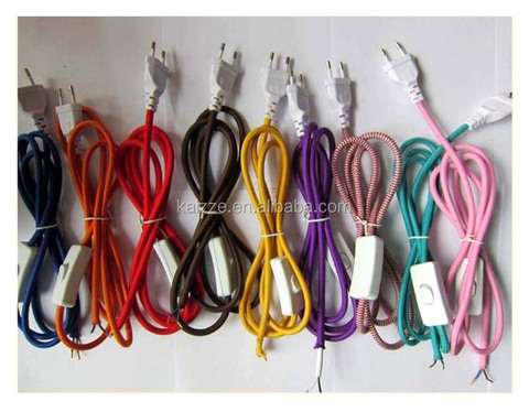 Fio de tecido padrão europeu cabo de pano com plug e interruptor